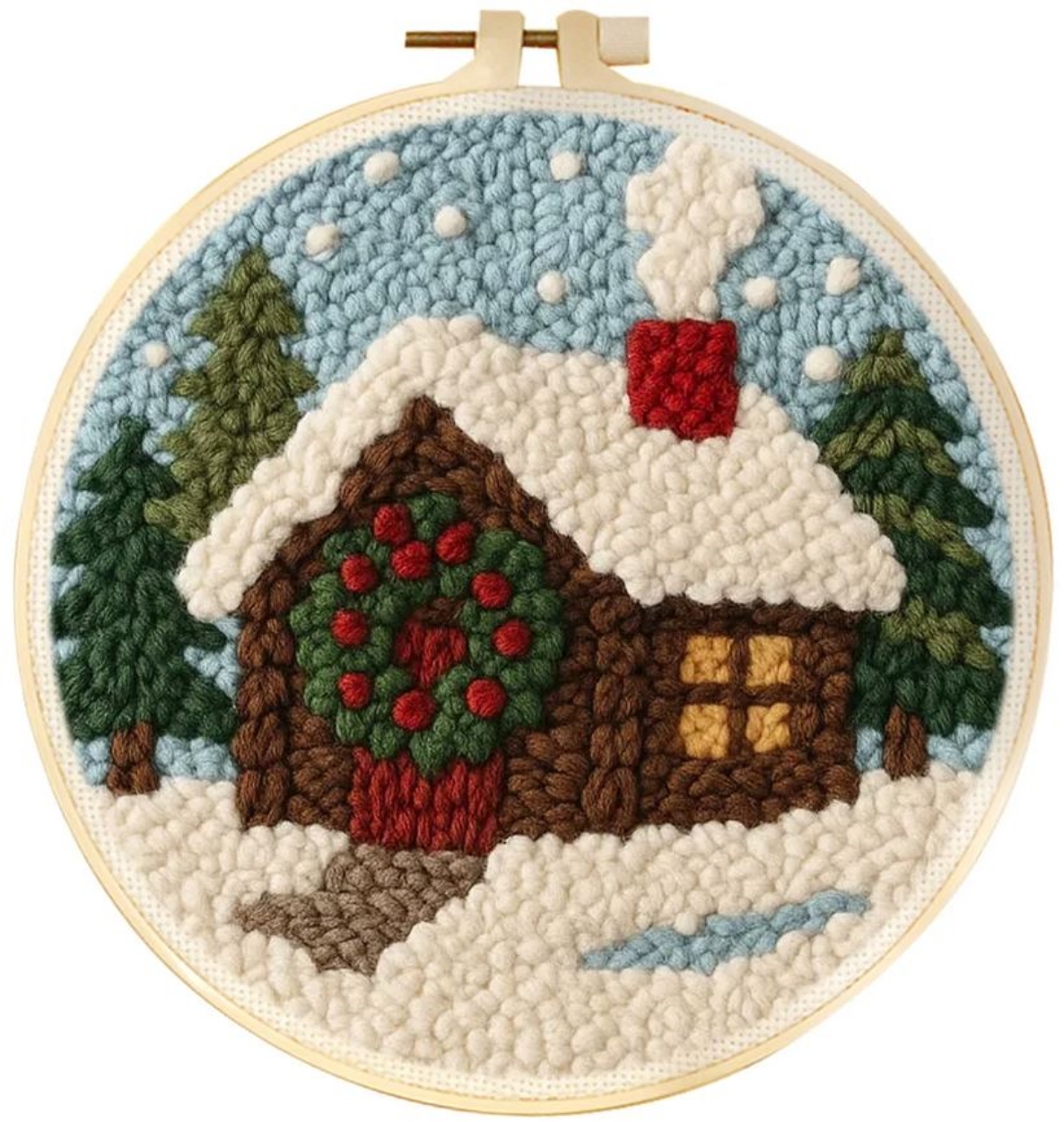 Punch Needle Kit | Christmas Cabin (20cm Round with Frame)