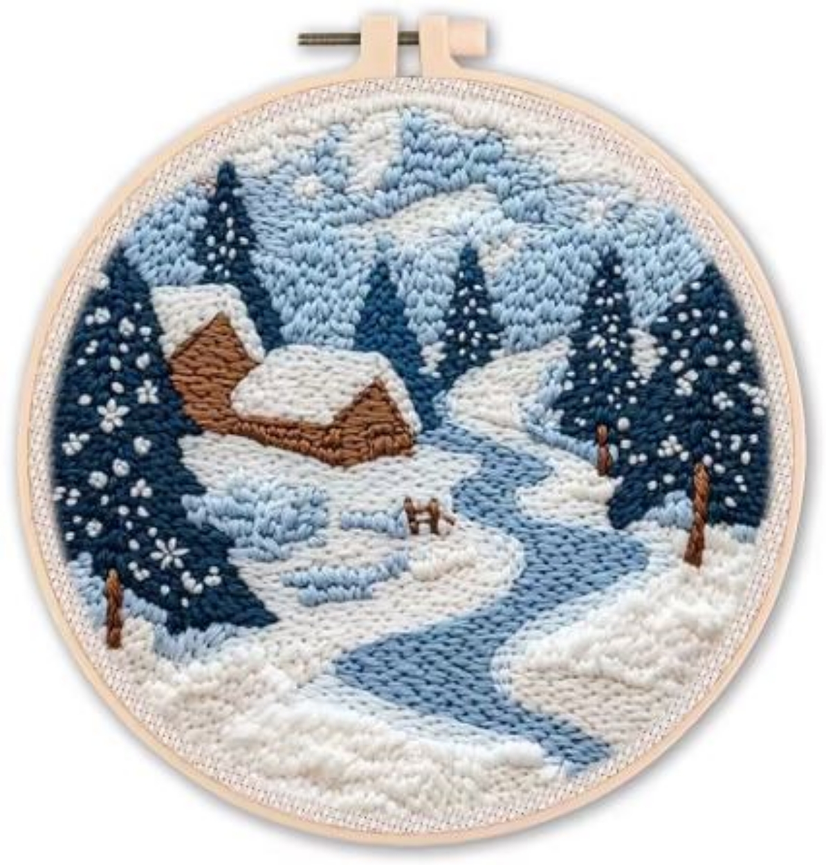 Punch Needle Kit | Winter Scenery (20cm Round with Frame)