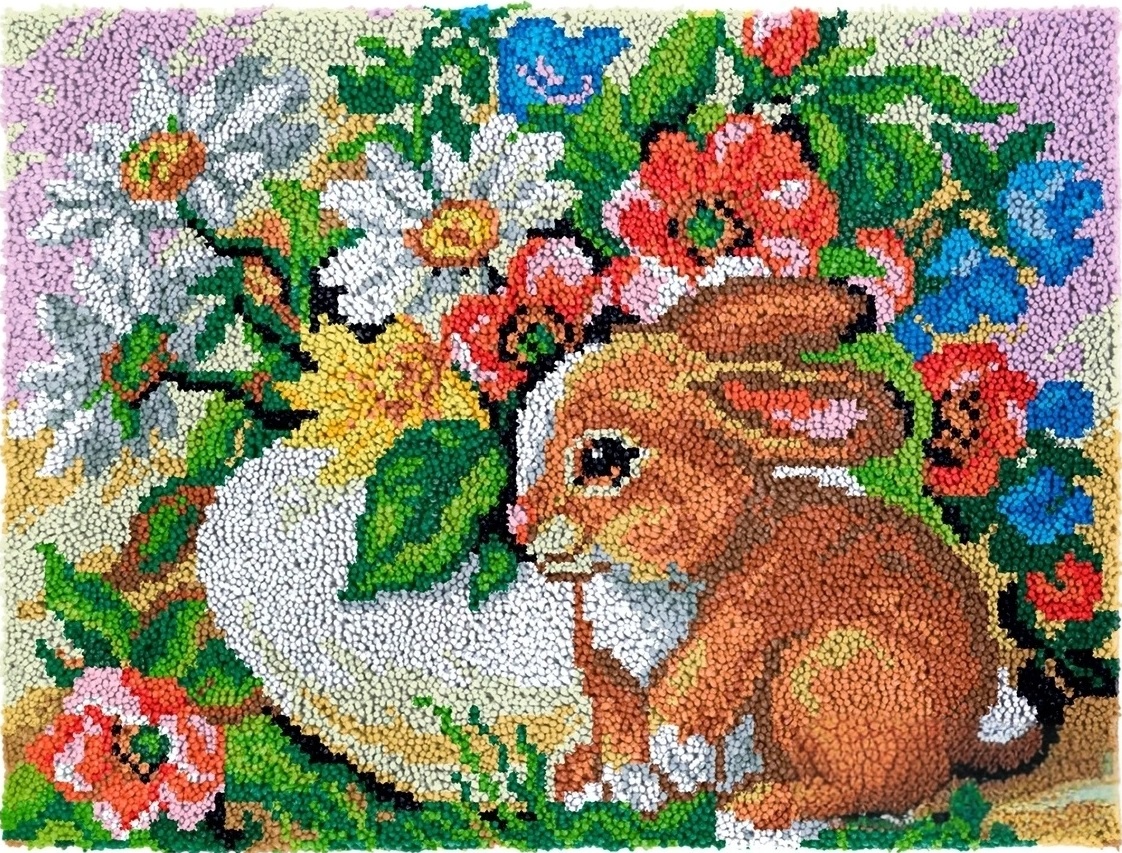 Rug Making Latch Hooking Kit | Rabbit Flowers (122x92cm)