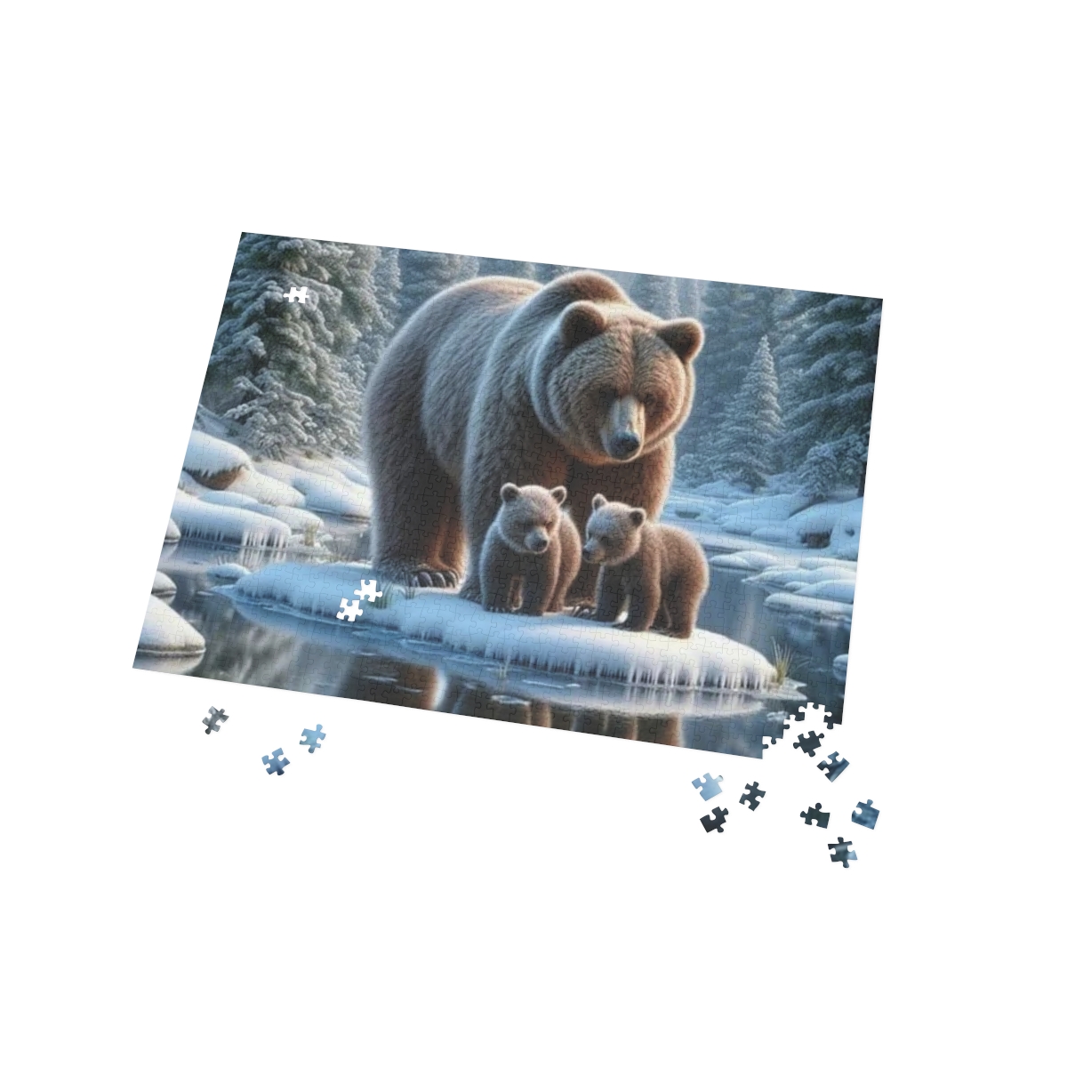 Mama Bear and Cubs Winter Scene Puzzle | 1000pc